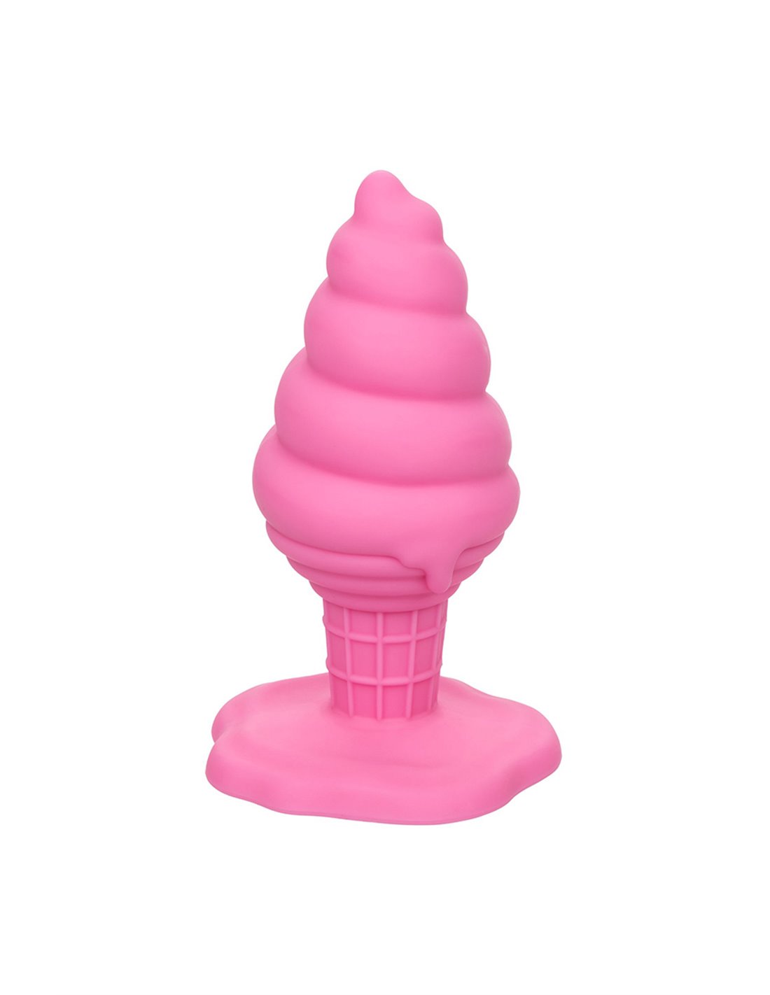 Un plug anal fun et excitant, 100% silicone, en forme de cornet de glace rose.