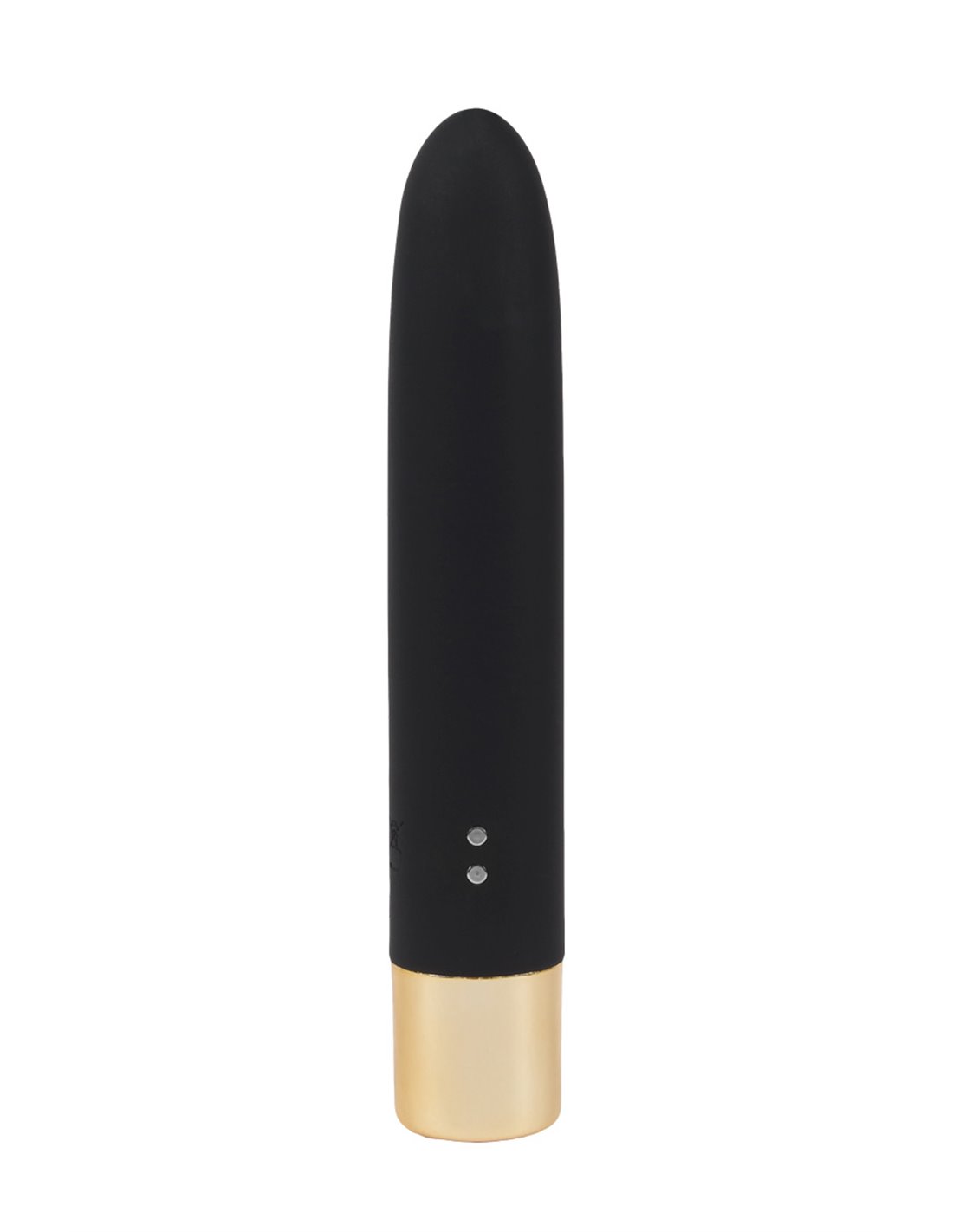 Sextoy Premium moderne, en silicone de haute qualité et au toucher doux, le vibro Texas est proposé dans une magnifique teinte bicolore noire et dorée.